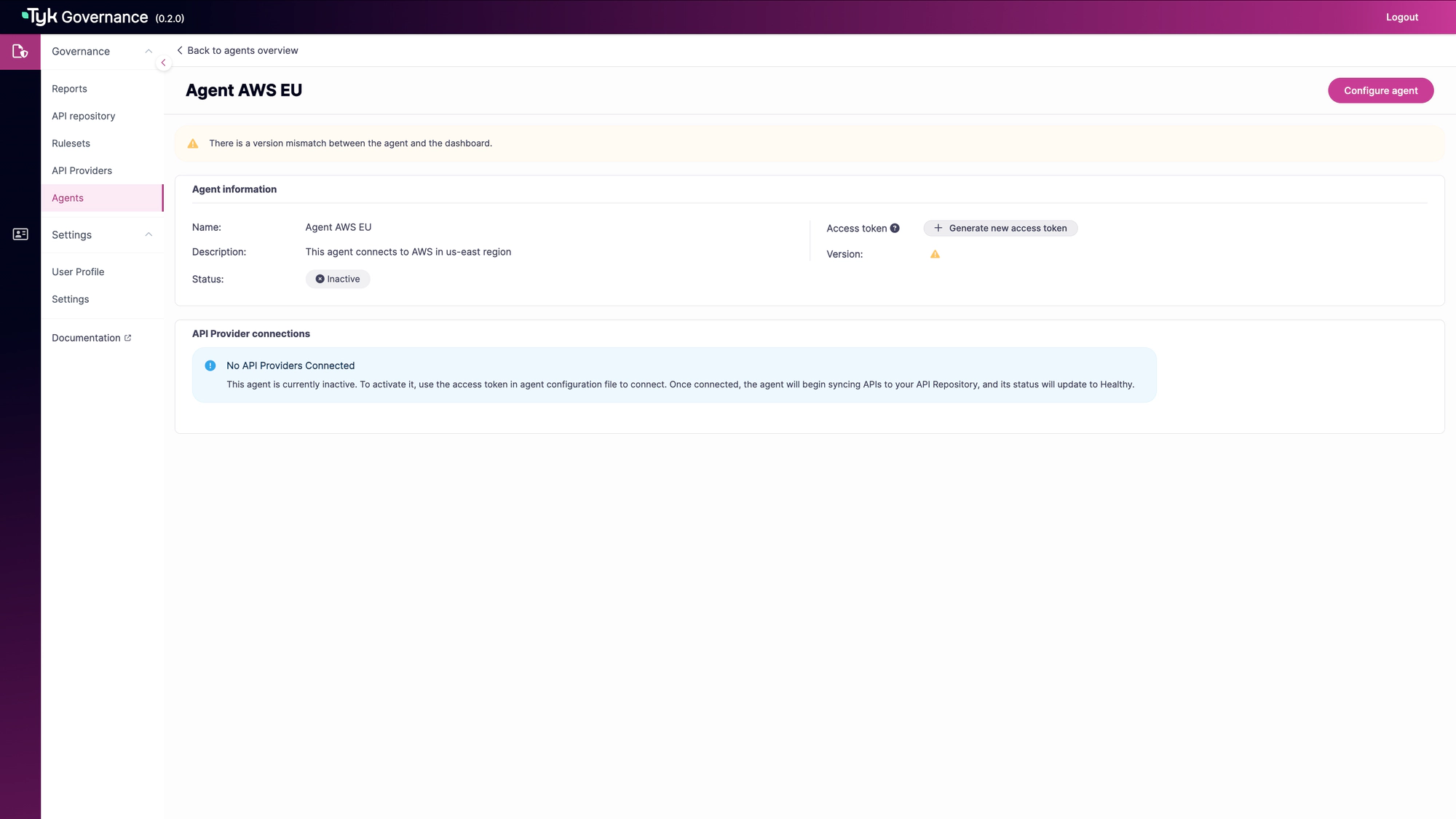 A1["Agent"] --- TG["Tyk Dashboard (Self-Managed)"]