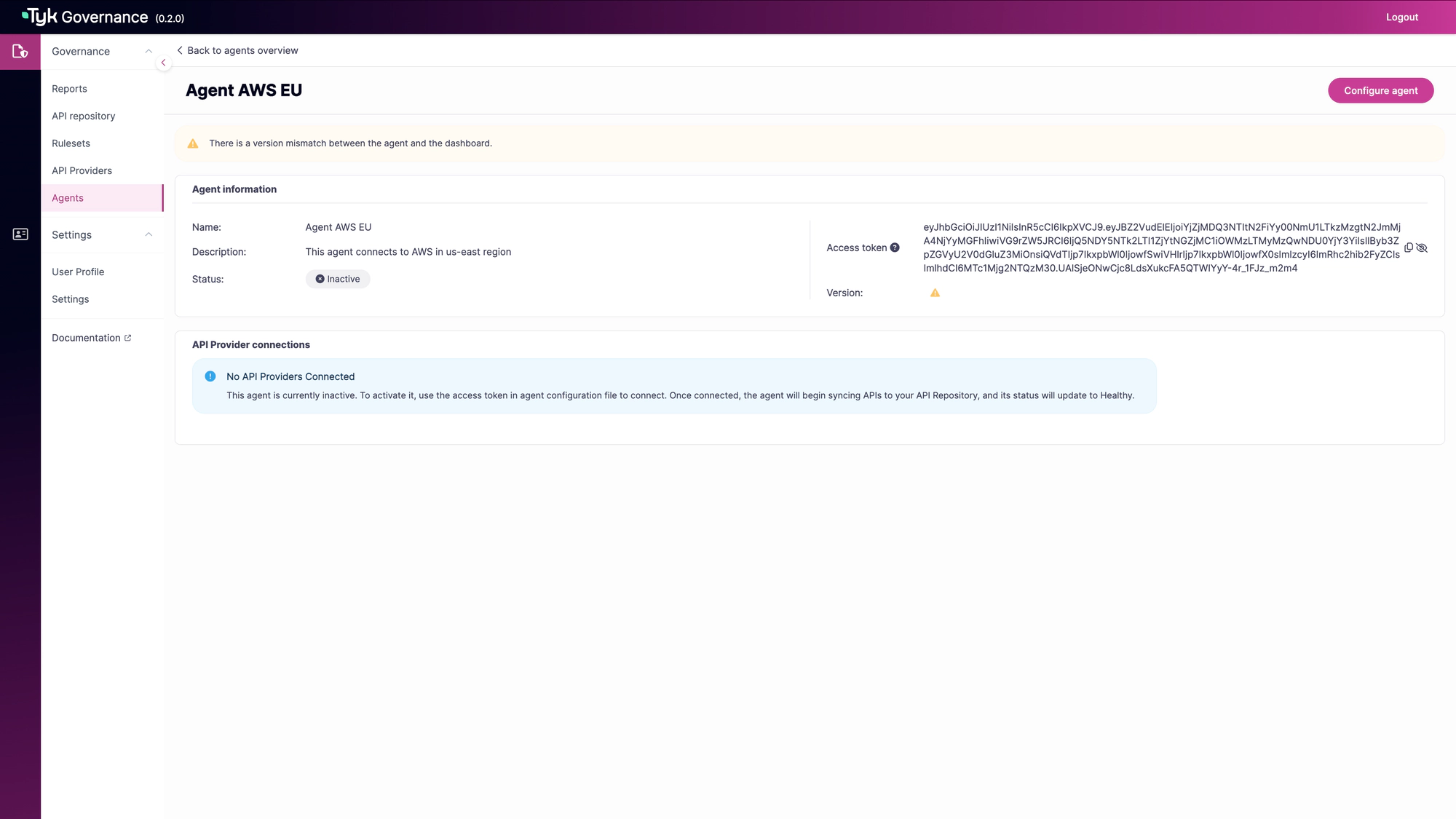 A1["Agent 1"] --- P1["Tyk Dashboard (Self-Managed)"]